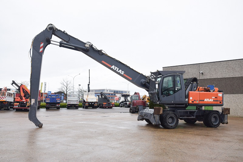 Atlas 350 MH – Langarm-Arbeitsbühne – mit Greif-, Dreh- und Magnetfunktion – Hydraulische Kabine – 4 Stützen – Gesamtgewicht 33.500 kg – 11.094 Betriebsstunden