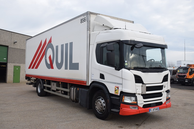 Geschlossener Polywood-Kastenwagen L 8,90 x H 2,70 x B 2,49 m – D’hollandia-Laderampe 2000 kg – Klimaanlage – Kamera – Navigation – Kühlschrank – Gesamtgewicht 19.000 kg – Leergewicht 10.670 kg – Radstand 6350