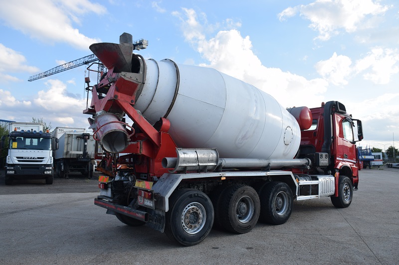 Betonmixer Mercedes Arocs – DEBUF 9 m³ mixer – Tridem 4 asser – optrekas en stuuras – Airco – totaal 32.000 kg – tarra 14.509 kg –