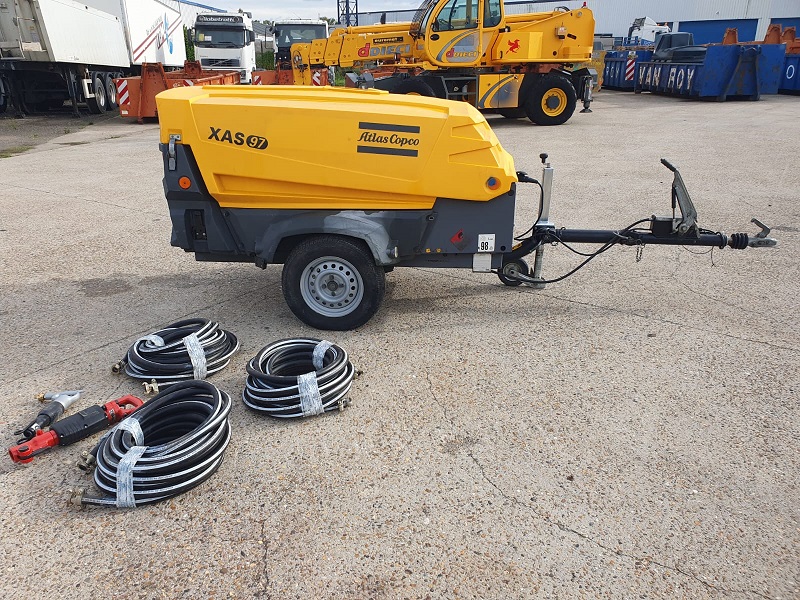 Atlas Copco XAS97 Compressor – 2750 rpm – 7 Bar – 36 Kw – gewicht 1060 kg – met nieuwe slangen en Hamers –
