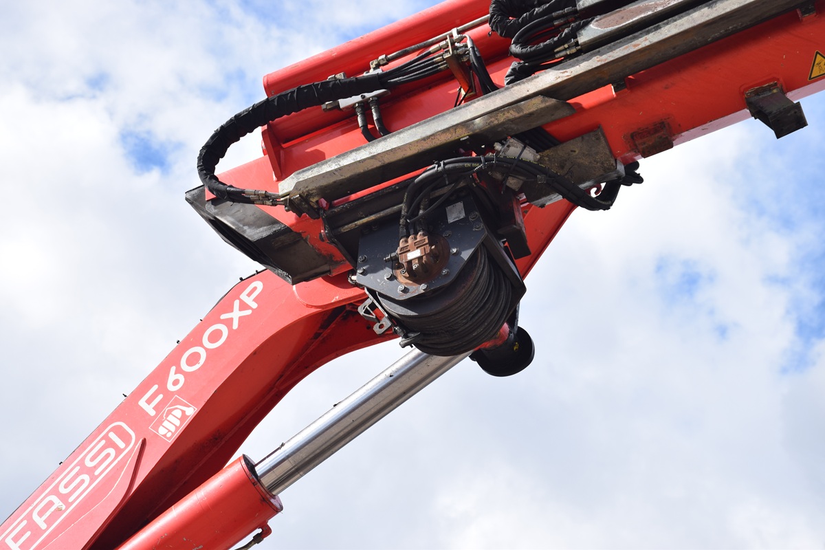 FASSI F600XP – Flygip – Winch – 4 steunpoten – Naafreductie – koppelschotel+ Laadbak +- 3 m – totaal 26.000 kg – Tarra 17355 kg – Wielbasis 3200 mm –