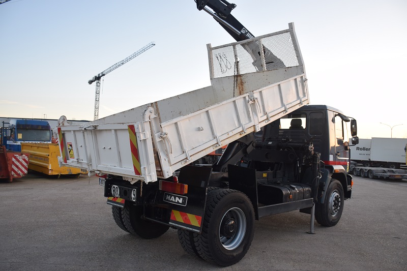 Kipper met zijborden 3.50 m – Hiab 090A – 1 x hydraulisch – Naafreductie – totaal 18.450 kg – Tarra 8400 kg – wielbasis 3600 mm –