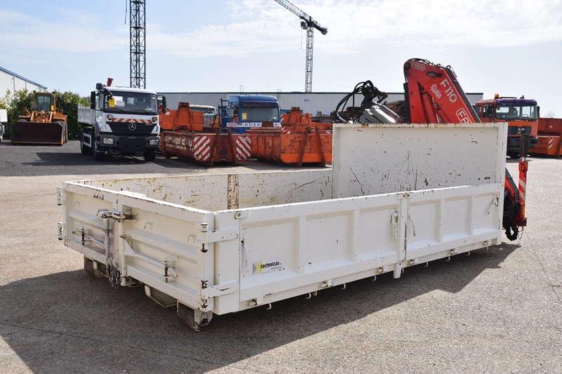 Eventueel als optie erbij te kopen deze container met kraan Fassi F110 A – 4 x Hydraulisch + Rotor met rotatie en grijpfunctie + afstandbediening .