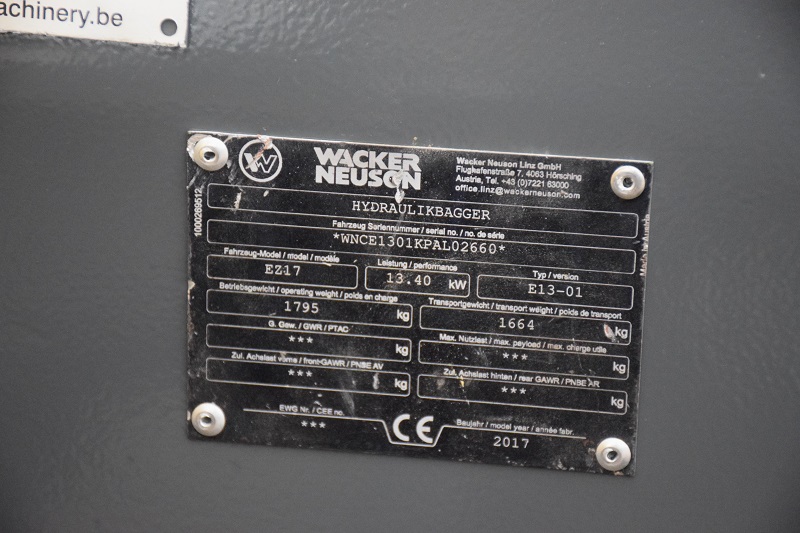 1376 werkuren – Mini Graafmachine Wacker Neuson EZ17 – Totaal 1800 kg – Motor 13.40 kw – inclusief 3 x graafbakken – 1 extra functie –