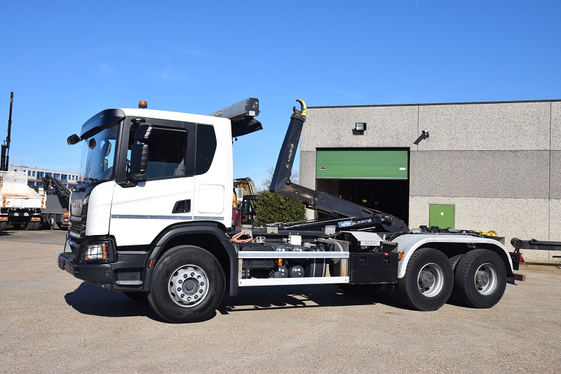 Haaksysteem MARREL AL20 -Uitschuifbare bumper – Retarder – Naafreductie – Electrische Báche – Airco – Navi – Automaat – totaal gewicht 26.000 kg – tarra 12160 kg – wielbasis 4300 mm –