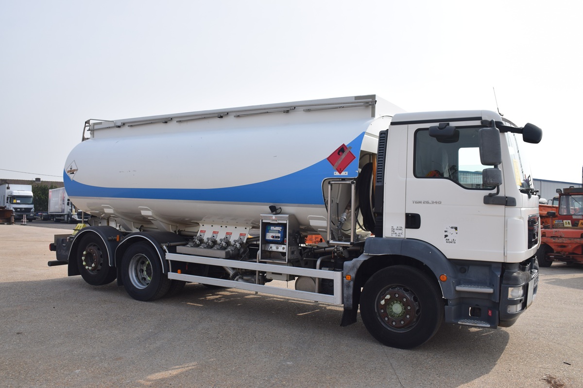 Tankwagen- Fuel truck 19000 L – 3000/7000/5000/4000 L – Airco – ADR –Camera – Optrekas en Stuuras – Totaal 26.000 kg -Tarra 8710 kg – wielbasis 4425 mm –
